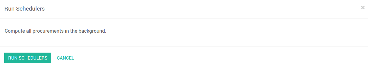 The scheduler is the calculation engine which plans and prioritises production and purchasing automatically according to the rules defined on products. By default, the scheduler is set to run once a day (Odoo automatically creates a Scheduled Action for this).